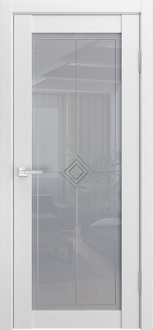 Дверь ПО Классика 3 Шагрень белая стекло Берн из Экошпона (Двери Нева) в Великом Новгороде с установкой и доставкой