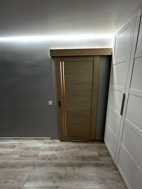 ПО QuLine 8-3 Беленый дуб стекло белое раздвижная с установкой "под ключ" в Рязани